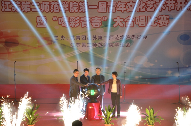 随后,管向群宣布我院第一届青年文化艺术节开幕,院领导与同学们一起倒数,共同启动象征梦想与希望的水晶球。绚烂的烟花、耀眼的灯光和青春的笑脸交织在一起,为梦想护航,为青春喝彩。
