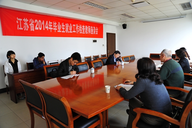 4月28日下午,由苏州大学党委副书记、副校长江涌,扬州大学学生处副处长杨桂元、南通航运职业技术学院就业处处长李斌以及苏州大学学生处卜谦祥等同志组成的江苏省2014年毕业生就业工作检查组来我院检查工作。汇报会在草场门校区教科研楼511会议室召开,院党委书记管向群,党委副书记、副院长程建军,副院长周成平、王仁雷、张勤,纪委书记刘青平,副院长刘继红出席会议,各职能部门负责人、二级学院党政负责人、2014届毕业生代表参加会议。汇报会由副院长王仁雷主持。