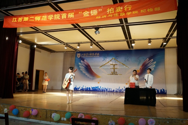 5月30日,由校团委主办,经济与法政学院承办的“金锤拍卖”活动在浦口校区礼堂举行。