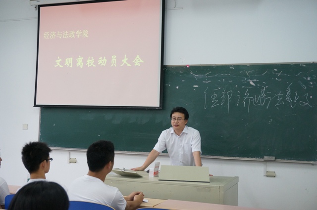 6月16日下午,经济与法政学院2014届毕业生“文明离校动员大会”在浦教108召开。院党总支书记李安林出席。