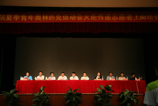 培训开始前,青奥组委会文化教育部部长焦勇为火炬传递志愿者代表授旗,授旗仪式标志着“分享青春线”和“共筑未来线”火炬传递工作的正式启动。