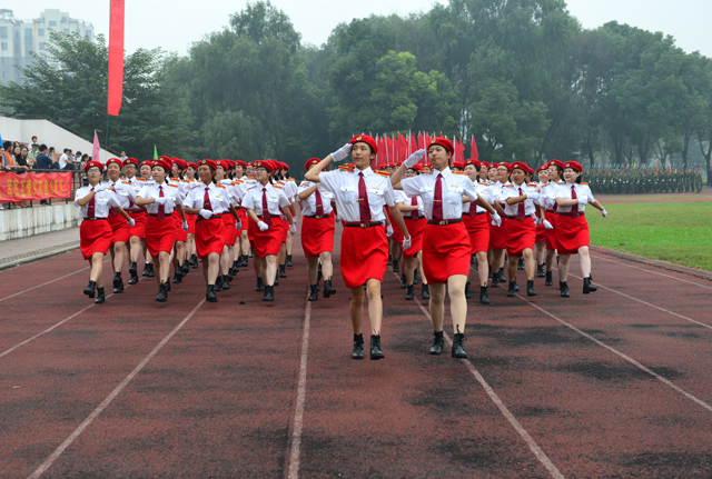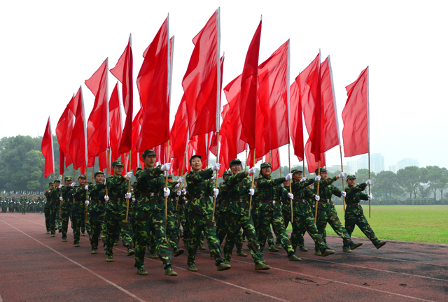 在庄严的国歌声中,大会正式开始。李洪天和陈朝兵检阅了新生军训团。检阅结束后,进行了分列式和军体分项表演。