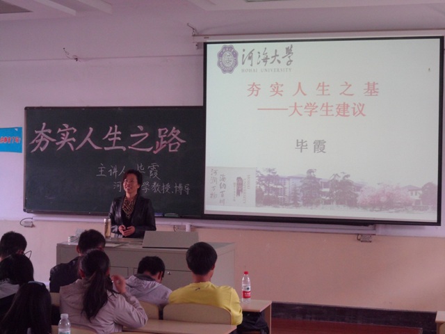 10月20日下午,社会发展学院面向大一新生举办“夯实人生之路——大学生活建议”专题讲座。河海大学博士生导师毕霞教授应邀主讲。14级旅游管理普本班和14级历史普本班全体学生参加。
