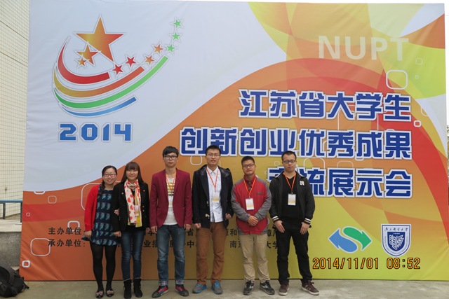 11月1日至2日,由江苏省教育厅、江苏省科学技术厅、江苏省人力资源和社会保障厅主办的“2014江苏省大学生创新创业优秀成果交流展示会”在南京邮电大学仙林校区体育馆隆重举行。省内各高校师生代表、专家与有关企业领导或代表,特邀代表800余人参会。