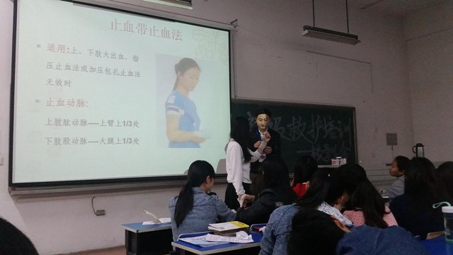 为了向大学生普及救护知识,培养大学生的救护技能,11月2日,院校学生会在浦口校区101、102教室组织了为期一天的“初级救护培训”活动。学生会、青年志愿者协会、社团联合会成员和其他各学院报名学生参与培训,鼓楼区红十字会陈尾、时万龙受邀担任讲师。