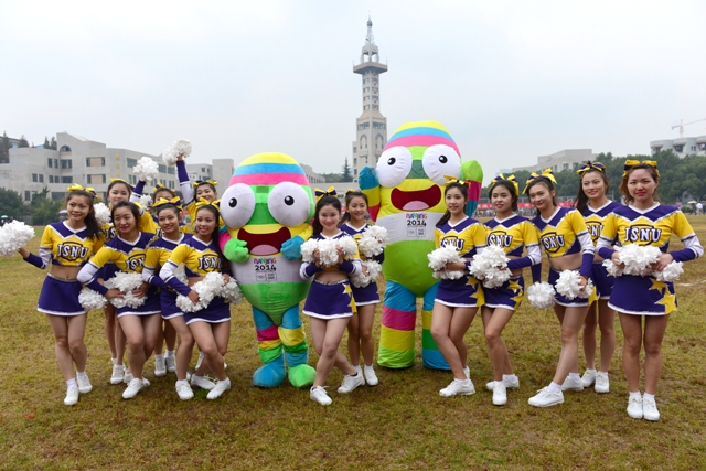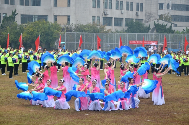 开幕式运动员入场仪式上,院系方阵各具特色的入场方式给在场的师生留下了深刻的印象。生化学院展示的“气球蛋糕”,城环学院亮出的地球仪和望远镜,经法学院激情四射的健美操表演等都充分展示了各学院的风采,彰显了同学们的青春活力。伴随着古典的乐曲,音乐学院同学带来的水袖表演让大家领略到了中国传统戏剧水袖“行云流水”般的美感。动感十足的“小苹果”啦啦操则将开幕式推向了高潮,三百多名身着荧光绿表演服的同学在青奥会吉祥物“砳砳”的带领下,整齐划一地跳着“小苹果”。顿时运动场成为了欢乐的海洋。