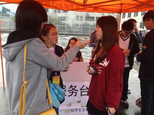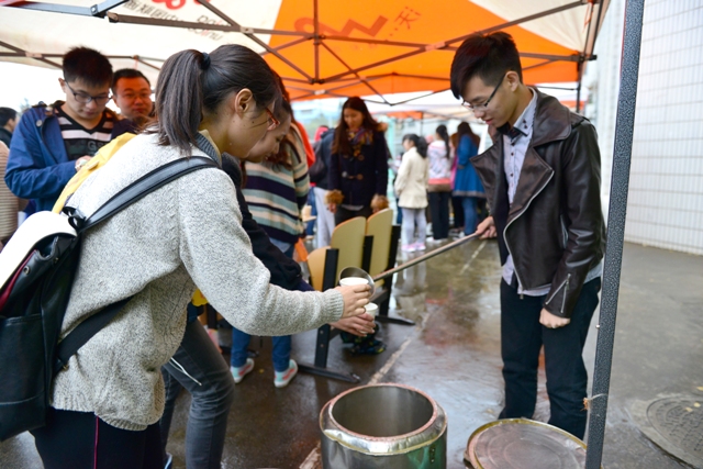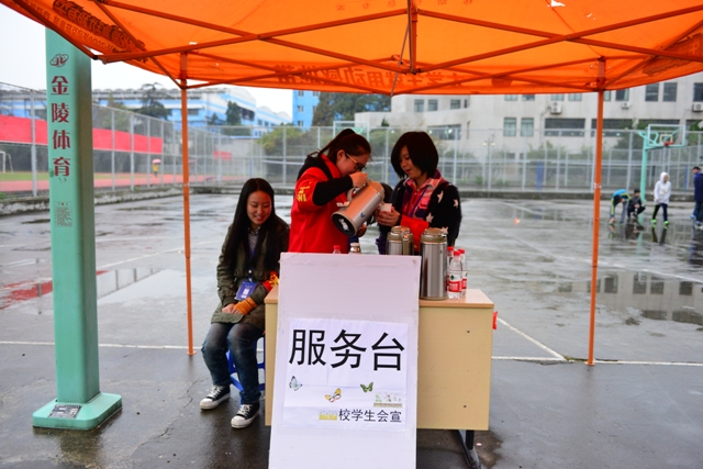 而在运动会赛场边上,各院系学生会搭起了服务平台的棚子。在雨中,那耀眼的黄色亭子引人注目。小行校区学生会主席任晶晶介绍,为了校运动会的顺利进行,小行校区学生会派出了工作人员引导、服务,方便运动员和工作人员,更提供姜汤为大家驱寒。