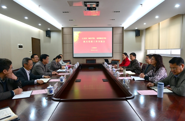 顾建国代表淮阴师范学院机关党委对我院的热情接待表示感谢,他简要介绍了该校的机关党建情况,并就高校机关党委作风、支部活动开展等工作与我院党、院办以及组织部、纪监审办公室等职能部门负责同志进行了深入交流。