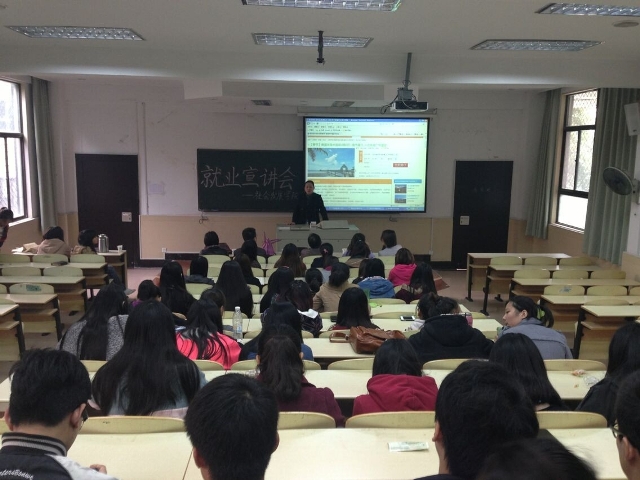 11月18日下午,社会发展学院举办本学期第三次毕业生就业宣讲会,南京市中国旅行社来院宣讲。11级旅游管理普本班、12级旅游管理专科班以及12级涉外旅游三个班全体同学参加会议。