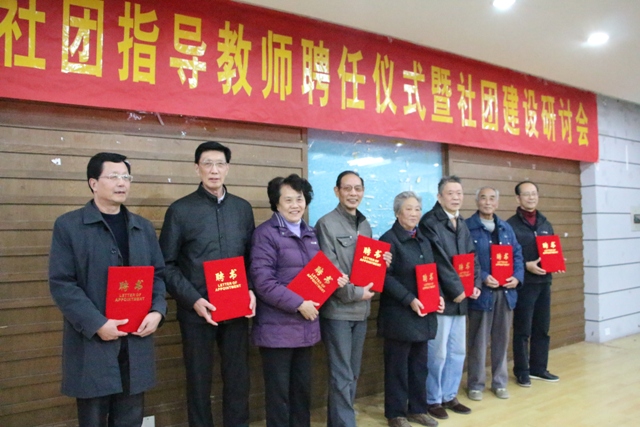 大会首先举行社团指导教师聘任仪式。陈建琴致词。她对前一阶段学生社团指导教师工作取得的成效进行了肯定,对各位退休教师长期以来对学生社团工作的关心和支持表示感谢,并预祝本次会议圆满成功。共计19名退休教师被聘任为2014-2015学年社团指导教师。院关工委原副主任、原政教系主任袁永椿老师作为指导教师代表发言,他对社团建设和发展提出了宝贵的建议。
