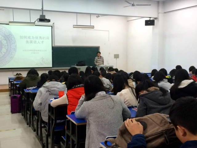 11月28日上午,江苏第二师范学院原资深教师曾以约先生受邀为2014级英语专业学生举行了“如何成为优秀的商务英语人才”的专题讲座。讲座由张莉主持。曾老师从如何学好商务英语、学好商务英语可以做什么和如何成为优秀的商务英语人才三个方面细致地为大家作了讲解。讲座内容贴近学生实际,深受大家欢迎,同学们都认真倾听并做好相关记录。本次讲座让同学们对商务英语有了更进一步的了解,也对今后的就业方向有了更为清晰的认识。