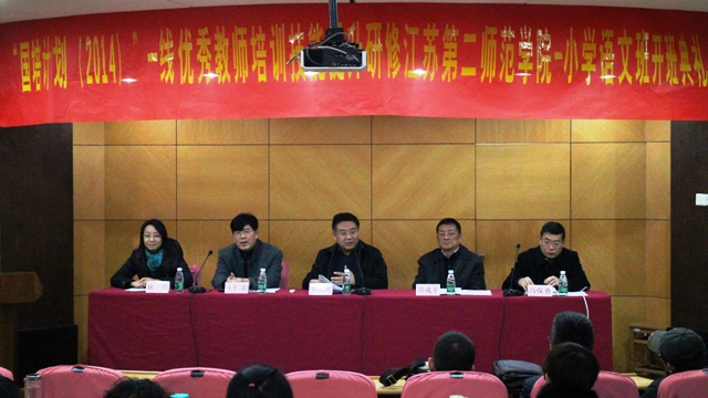 12月6日上午,我院在草场门校区教育技术楼一楼报告厅隆重举行“国培计划(2014)”——一线优秀教师培训技能提升研修小学语文班开班典礼。党委书记李洪天、常务副院长周成平、副院长王仁雷、文学院副院长冯保善、继续教育办公室副主任耿珺出席典礼,开班典礼由王仁雷主持。