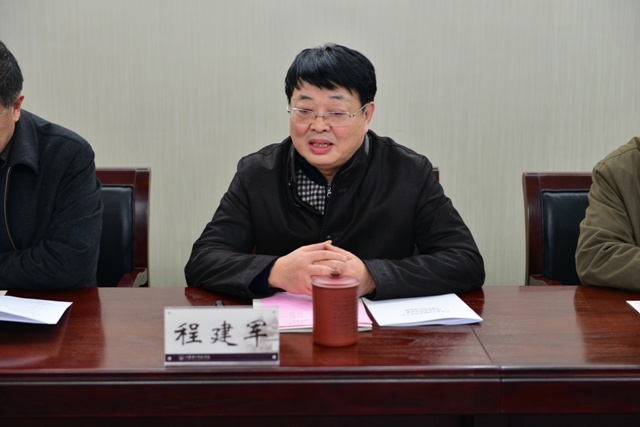 程建军作申报工作汇报。他从基地研究方向的确定和我院研究优势、前期研究成果、研究团队、研究计划四个方面向专家详细汇报了我院拟申报研究基地的情况。