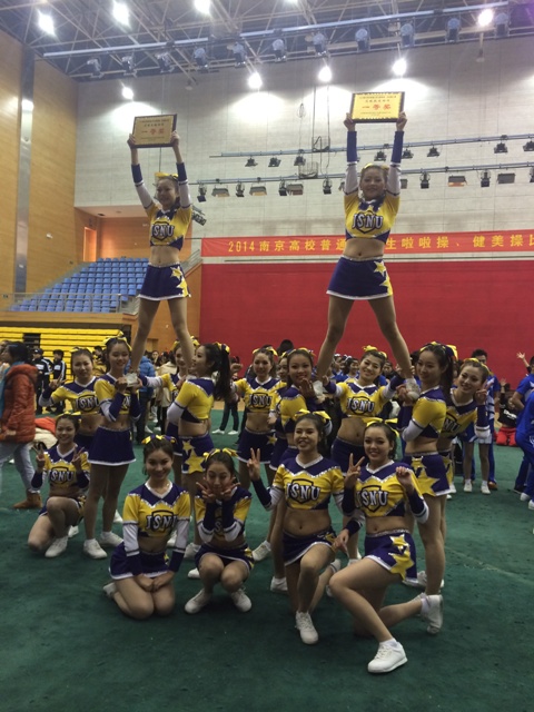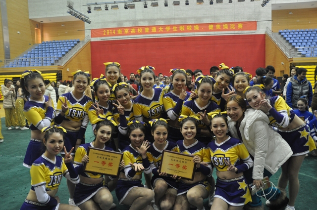 在刚刚结束的2014南京高校普通大学生啦啦操、健美操比赛中,我院代表队获得花球啦啦操规定套路和自编套路一等奖。