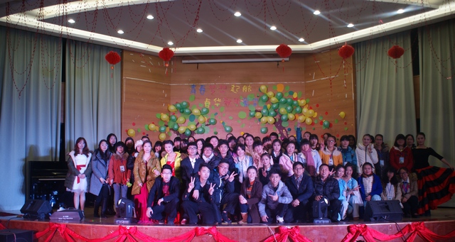 晚会开始,潘文致新年祝福语。同学们表演了歌曲、舞蹈、小品等节目,节目类型丰富,内容精彩。最后,晚会在大合唱《相亲相爱》中结束。