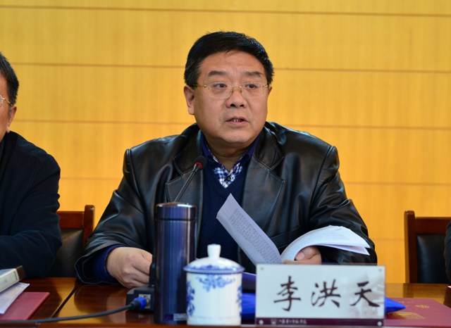 李洪天发表讲话。首先,他充分肯定了近年来我院学生工作取得的成绩。他指出学生工作是高等教育的重要组成部分,我院自转设更名以来特别是2014年以来,学生工作紧紧围绕立德树人的根本任务,以提高人才培养质量为目标,深入实施学生工作创新工程,全面推进学生管理、招生就业、校园文化等各项工作,成绩喜人,振奋人心。其次,他要求大家站在新的历史方位,科学认识高校学生工作面临的新形势。他指出,在国内外深刻变化的新形势下,高校学生工作要紧紧围绕“新”字下功夫、做文章,要把认真做好新时期学生工作与加快建设高水平有特色新型师范学院的新目标紧密融合,与切实承担基础教育高素质人才培养的新使命紧密融合,与大力推进现代化数字化园林化校区建设的新举措紧密融合。李洪天强调,我院学生工作需要在更高起点上解决新问题,需要适应学生个性发展的新要求,需要肩负起推进教师教育改革创新的新任务,进一步增强工作的主动性和针对性,进一步提高工作的创新力和执行力,不断开创学生工作的新局面。最后,李洪天对今后一个时期我院学生工作提出如下要求,即以构筑思政教育大平台为抓手,着力培育和践行社会主义核心价值观;以贯彻落实法治精神为重点,不断提升学生管理服务能力;以创新机制模式为关键,认真做好招生工作和就业创业教育;以提升专业化水平为目标,继续加强学生工作队伍建设。他强调指出,形成具有浓郁师范特点的校园文化氛围非常重要,这种校园文化从本质上讲,应是教人求真,学做真人的校园文化,是崇尚“学高”,敬仰“身正”的校园文化。这种校园文化的形成需要学校各职能部门、各院(部)的通力合作,需要全体教职员工、学工同仁的行为世范,需要从教育教学、教育管理、校园环境、团学活动各方面精心营造。