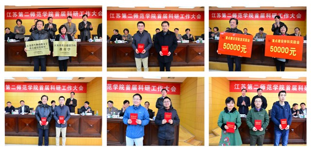 大会为获批教育学江苏省重点建设学科和江苏省生物功能分子重点建设实验室颁发了铜牌及奖励金,表彰了获得江苏省第十三届哲学社会科学优秀成果奖的教师,表彰了院科研工作先进集体、优秀科研工作者和科技之星。常务副院长周成平、副院长王仁雷宣读表彰决定,与会院领导颁发各奖项。