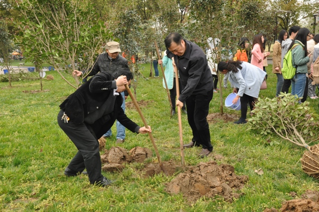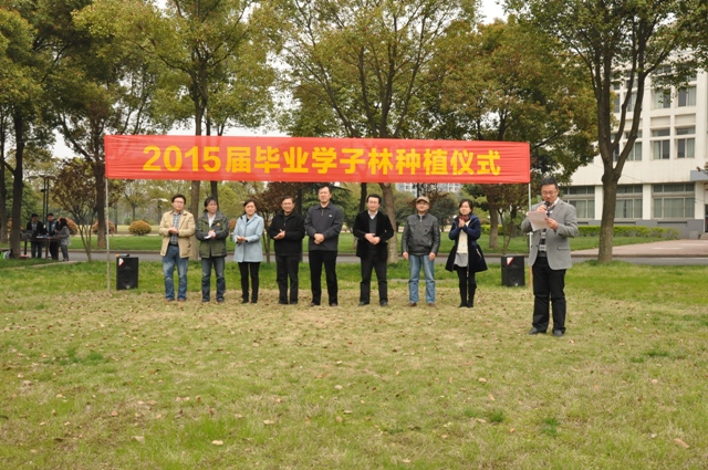 为留下毕业学子成长印记,增进学生与母校之间感情,促进校园绿化建设,4月10日下午,浦口校区举行2015届毕业学子林种植仪式。副院长祝兴成、学工处副处长司南、团委副书记丁莹、后勤处副处长黄大双、保卫处副处长王建宏,相关学院总支书记、学工办主任及200余名毕业生代表参加活动。活动由浦口校区管委会副主任赵俊主持。