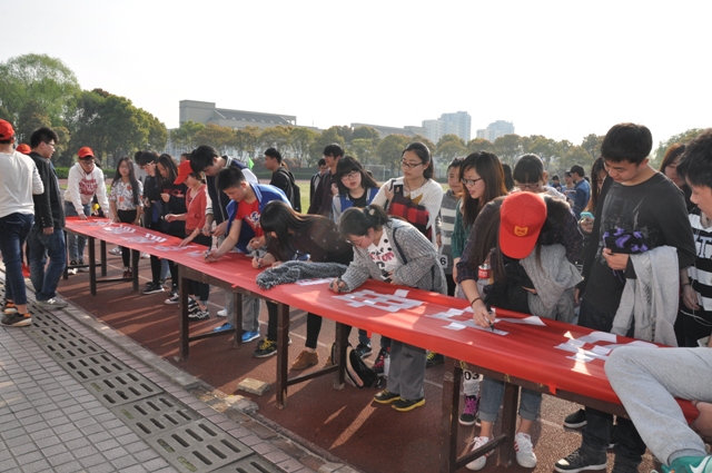 比赛结束后,热情的同学们还在“助力申奥,为梦想加油”的长条横幅上认真签下自己的名字,用实际行动为申办2022年冬季奥运会助力。
