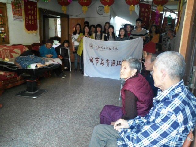 4月22日下午,城环学院13级和14级学生代表组成团队来到雨花台区凤翔敬老院,给老人们献上一份爱心。