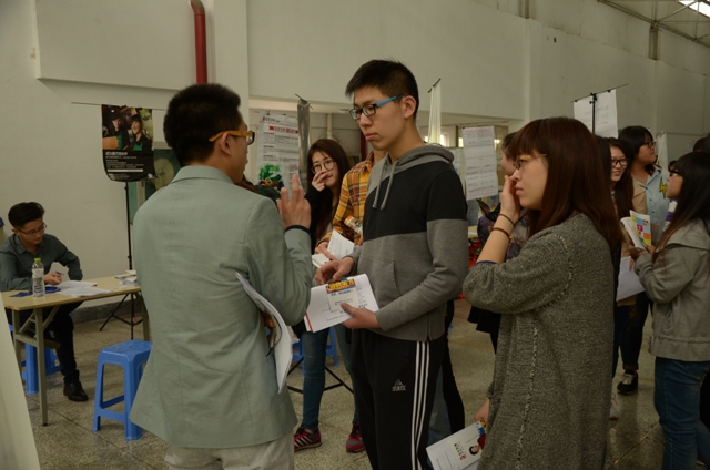 各二级学院就业工作负责人及辅导员积极宣传,并现场指导毕业生应聘,招聘会受到了毕业生的广泛关注。除了2015届的毕业生积极到场参会,大量本科三年级的学生也到场观摩招聘活动,提前感受职场氛围。同学们积极与用人单位进行沟通与交流,主动自我介绍并递交简历,与招聘人员就岗位需求、工作性质和薪酬待遇等方面的问题进行咨询。