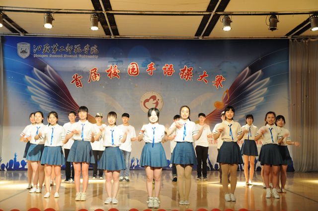 比赛中各节目均以手语操展示为基础,13个代表队精心准备、认真表演,为评委和观众们带来了异彩纷呈的节目。“把你的心,我的心,串一串,串一株幸运草,串一个同心圆”生命科学与化学化工学院以整齐的队形,精巧的手势展示了“爱”的温情;教育科学学院伴随“爱的供养”手捧红色蜡烛,温暖了观众们的心田;学前教育学院的节目《礼》融入了中国传统文化元素,演绎着一番别样的风采。经过一番激烈的角逐,最终生命科学与化学化工学院获一等奖,教育科学学院和外国语学院获二等奖,学前教育学院、现代传媒学院和经济与法政学院获得三等奖。