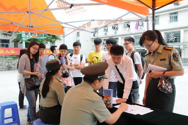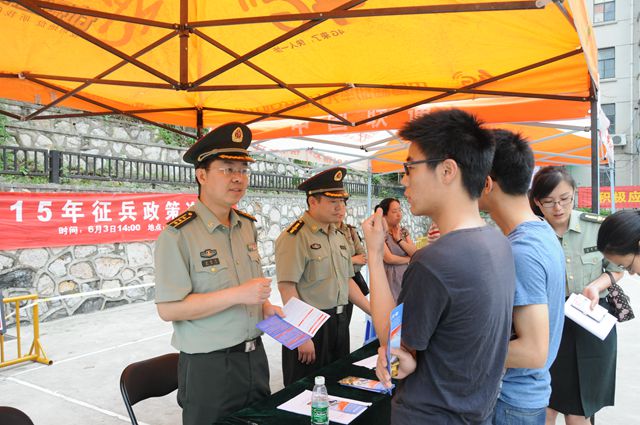 征兵宣传活动现场吸引了众多在校学生前来咨询,鼓楼区人武部相关同志边发放征兵宣传资料,边向学生耐心解答有关兵役登记、报名应征、政治考核、优抚安置等方面的问题,鼓励他们加入到军队的大家庭中建功立业,为国家的国防事业做出自己的贡献。