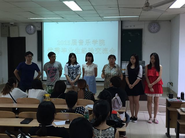 6月12日下午,音乐学院在草场门校区举行2015届优秀毕业生经验交流会。音乐学院党总支书记蒋向红出席并讲话,六位2015届优秀毕业生在会上进行经验交流。音乐学院大二和大三同学参加会议。