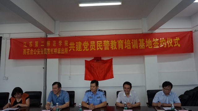 6月26日下午,小行校区与雨花台公安分局赛虹桥派出所举行共建党员民警教育培训基地签约仪式。副院长祝兴成、学前教育学院院长尹坚勤、保卫处处长李学春、组织部副部长周长宏,赛虹桥派所所长董磊一行7人出席签约仪式。仪式由小行校区管委会主任王建宏主持。