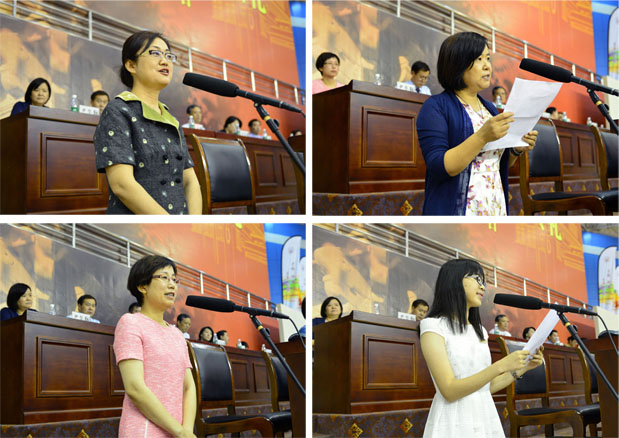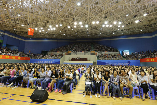 杰出校友代表,党的十七大、十八大代表金燕老师作《起飞,你准备好了吗?》的演讲。她与同学们分享了自己求学与从教的所思、所想、所感。她希望新生们遵循自己内心的想法,坚定信念、明确目标——确定以教师作为自己的职业并遵守教师的职业规范。她借自己的成长故事,鼓励新生们“学习、实践永远在路上”,做“一个最优秀的细胞”。她告诉新生们,学习、生活乃至以后的工作会遇到各种挫折,各种困难,但是只要能够以高度的责任感和对工作的无限热爱,脚踏实地做好每一件事,就能在教师职业生涯中享受人生的快乐。金燕老师勤于钻研,带病坚持学习、工作的精神,对生活坚强、乐观的态度,对教育事业和学生的“大爱”,引起了全体新生的共鸣,会场不时响起阵阵掌声。