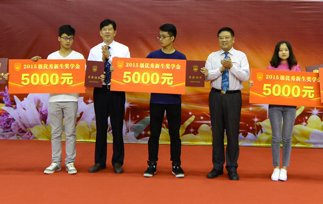 会上,李洪天宣读《2015级优秀新生表彰决定》,李洪天、王仁雷为“优秀新生奖学金”获得者颁发证书、奖学金,并合影留念。