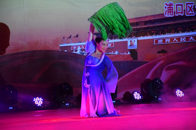 动感激情的开场舞拉开了本次演出的序幕。传唱数百年之久的昆曲《游园惊梦》、郝纯老师曼妙的独舞《咏荷》、孟萌老师优美动听的《芦花》、王建老师激情的《松花江上》、曾获第五届“国戏杯”全国学生戏曲大赛一等奖的京剧《绣红旗》等节目逐渐把晚会推向高潮。本场晚会由音乐学院和大学生艺术团共同呈现,结合了流行音乐、舞蹈、戏曲、小品、艺术歌曲等多种元素,表达了师生对祖国母亲的美好祝愿,也得到了沿江社区居民的一致好评。