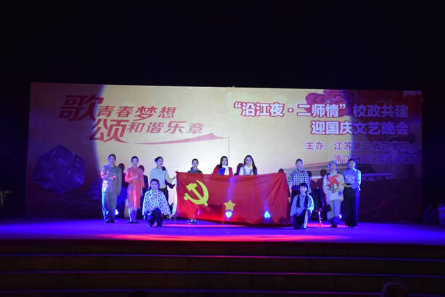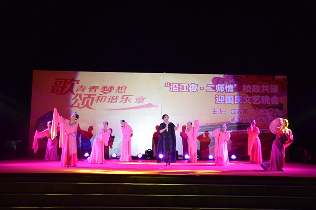 9月16日晚,校团委联合浦口校区管委会、音乐学院与浦口区沿江街道办事处,在沿江街道复兴广场共同举办主题为“歌青春梦想颂和谐乐章——沿江夜·二师情”校政共建迎国庆文艺晚会。我校与沿江街道相关部门负责人出席并观看了整场晚会。