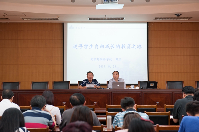 9月23日,江苏省教育科学研究院举办第四期学术论坛。党委书记李洪天、副院长王国强、王晓天及教科院全体人员参加活动。苏州市教育局局长顾月华及南京外国语学校校长邹正作了两场精彩纷呈、发人深省的报告。