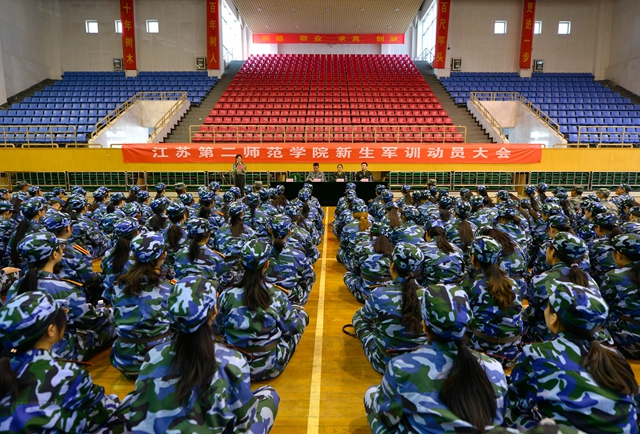 10月12日,我校2015级新生军训动员大会分别在浦口校区和草场门校区隆重举行。承训部队军官梁新磊、赵家峰,军训办主任、学工处处长刘莹,军训办副主任、浦口校区管委会主任赵俊,军训办副主任、团委副书记丁莹及全体教官出席大会。2015级新生军训团1800名参训学生、军训带队教师以及军训办全体工作人员参加大会。大会由军训办副主任、学工处副处长司南主持。
