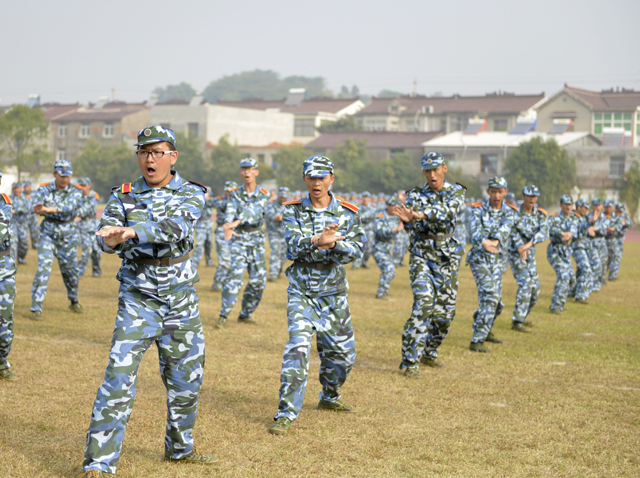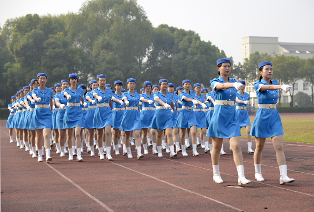 在庄严的国歌声中,大会正式开始。各军训方队在军训团团旗的引导下,迈着整齐的步伐一一经过主席台,接受与会领导和教官的检阅。他们着装整齐、精神饱满、步伐铿锵、口号嘹亮,充分展示了当代大学生的蓬勃朝气,彰显了报效祖国的壮志豪情。示范方队和施训教官进行了女子匕首操、军体拳、刺杀操表演。男生们身手敏捷、合作无间、行动迅速,充分展示着铁血男儿的非凡神采。表演方阵中的女生们斗志昂扬、英姿飒爽,整齐划一、刚柔相济的动作尽显巾帼豪气。他们精彩的表演赢得了在场领导和师生们的阵阵掌声。