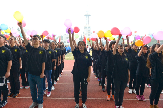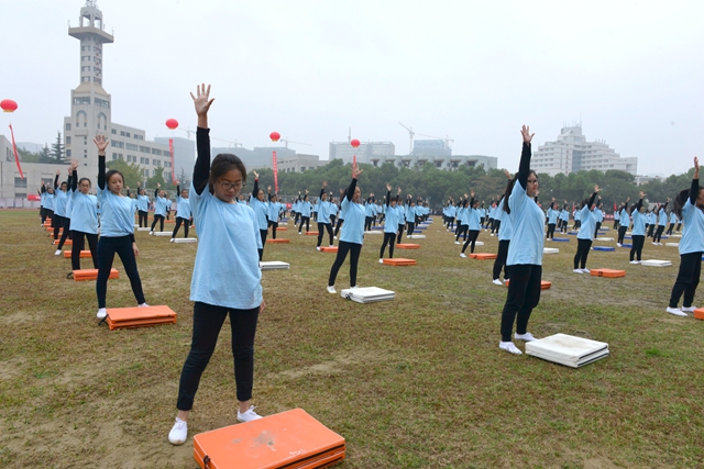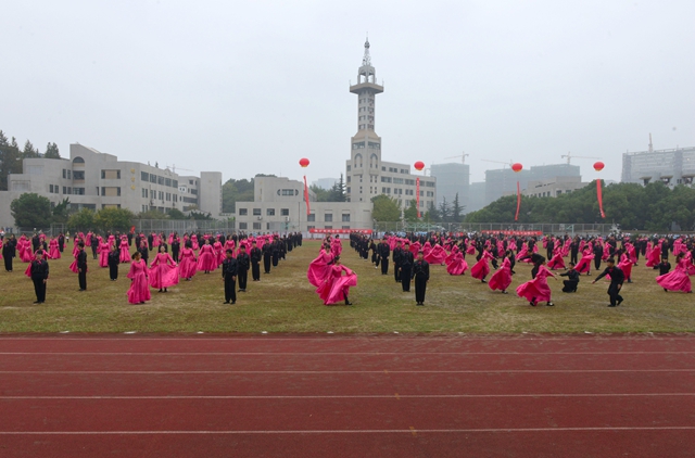 开幕式的表演精彩纷呈。由315名学生表演的团体操“青春飞扬”朝气蓬勃、气势恢宏,为大家呈上了一场视觉盛宴。女子军体拳表演动作行云流水、刚柔并济、一气呵成,展现了女生巾帼不让须眉的气概。360名同学表演的华尔兹舞“盛世华章”美轮美奂,旋律大气磅礴,舞姿潇洒飘逸,体现了我校学子青春向上的正能量,诠释着我校“开拓创新、团结奋进”的精神内涵。