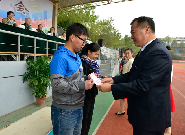 刘青平致闭幕词。他说,此次运动会参与面广、项目多样、成绩突出,不但检阅了我校体育运动发展的水平和实力,也增强了全校师生员工的凝聚力和向心力,充分展示了我校师生员工良好的精神风貌,取得了体育竞技和精神文明双丰收。他希望全体师生以更强健的身体、更饱满的精神和更坚强的意志投入到今后的工作和生活中去,为新型师范学院建设事业再立新功、再创辉煌。