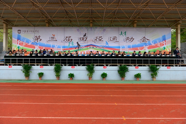 恰同学少年,风华正茂;呈飒爽英姿,试比天高。冷冽的秋风吹不灭师生们如火的激情,11月9日,我校在小行校区隆重举行第三届田径运动会。党委书记李洪天,院长王仁雷,校领导程建军、周成平、张勤、刘青平、刘继红、祝兴成出席开幕式。党委副书记、副院长程建军主持开幕式。