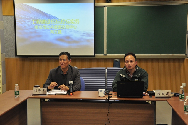 11月11日,纪监审办公室邀请南京市公共资源交易中心工程交易部部长冯文建来校作招投标实务讲座。纪委书记刘青平出席,院办、工会、财务处、教务处、资产与设备管理处、后勤管理处、基建管理处、图书馆、新校区筹建办等职能部门负责人及有关工作人员40多人参加。