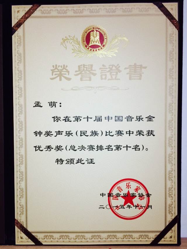 在日前结束的第十届中国音乐金钟奖(中国音乐最高奖项)民族声乐比赛中,代表江苏省出征大赛的我校孟萌老师,和全国