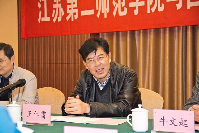 王仁雷致欢迎词,他介绍了江苏教育行政干部培训中心的情况,指出中国教育干部网络学院江苏分院成立,将借助国家教育行政学院平台,按照中央及教育部干部培训的统一要求、地方与高校培训干部的个性化学习需求,在专家的指导下,紧跟教育改革与发展形势,围绕中心工作,追踪热点、难点,密切关注教育干部日益多样化的学习需求,注重理论与实践相结合开发课程资源;同时多渠道多形式整合国内外优质资源,打造精品课程,不断推新,滚动发展,构建内容丰富、特色鲜明的课程体系,努力使江苏教育行政干部培训工作再上新台阶。