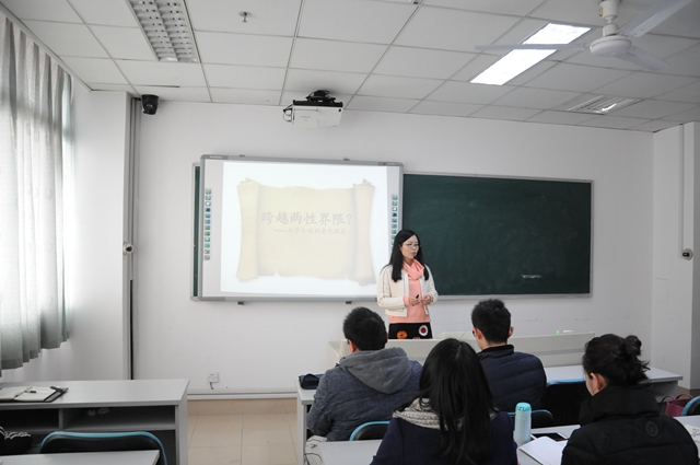 11月26日,教育科学学院黄颀老师就“大学生性别角色”与辅导员们共同展开探讨。黄老师介绍了我国大学生性别角色发展的现状,针对我校女生多及当今社会“女汉子”众多的特点,重点探讨了女性性别角色发展,并对大学生性别角色引领的对策给辅导员们提出了建议。