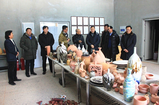 在哈尔滨学院领导的陪同下,李洪天一行还参观了展示该院特色和优势专业的艺术与设计实验中心。