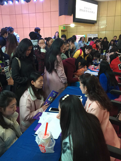 2月29日下午,音乐学院举行2016届毕业生专场招聘会,党总支书记蒋向红主持会议,2016、2017届毕业生到场参会。南京哆莱咪文化艺术培训中心、南京新起点双语培训学校、张家港爱乐琴行、江阴天岚艺术培训中心和小银星艺术团等到场招聘。