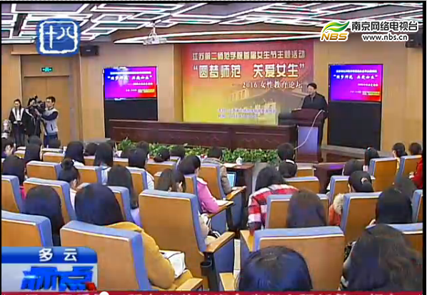 列活动之“女性教育论坛”,正式拉开了“女生节”系列活动的帷幕。党委副书记、副院长程建军出席论坛并讲话。知名校友、镇江市少年宫党总支部书记金燕,南京师范大学教育科学学院班主任研究中心主任齐学红,南京市实验幼儿园园长章丽,我校学前教育学院院长尹坚勤四位嘉宾作精彩发言。南京电视台《标点》栏目对此做了现场报道。