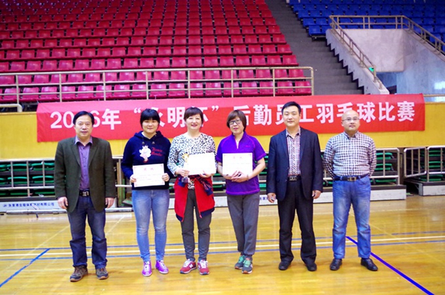 本次羽毛球比赛分男、女单打两个项目,采用单淘汰制赛程,竞争异常激烈。各路选手“八仙过海,各显神通”,纷纷拿出看家本领,奋勇拼搏。最终,何振芳、朱成剑和张雪莲分获女子单打冠亚季军,胡元强、郭永涛和何俊分获男子单打冠亚季军。后勤党总支书记傅磊、后勤处副处长黄大双和南京永明物业管理公司总经理黄山到场为获奖选手颁奖。