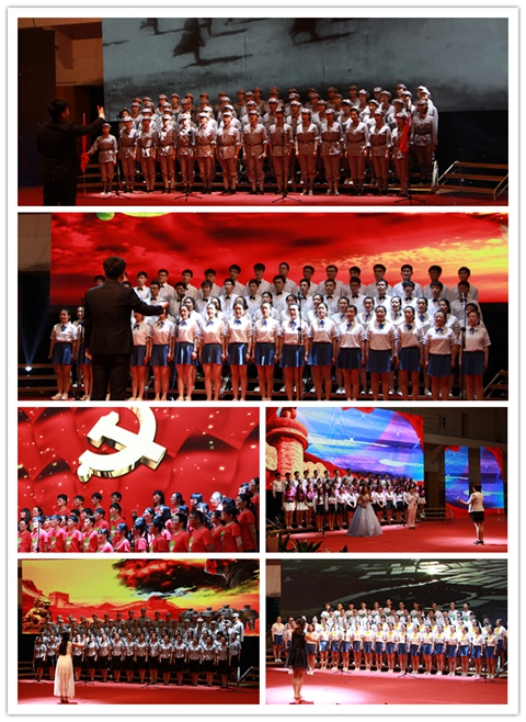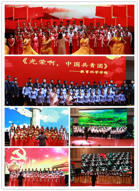开幕式后举行了庆祝建党95周年——“以青春的名义”大合唱比赛。各二级学院参赛队伍分“旗帜·青春·信念”、“祖国·青春·足迹”、“时代·青春·先锋”三个板块,精心表演了《妈妈教我一支歌》、《保卫黄河》、《走向复兴》、《在灿烂阳光下》等12首大合唱节目。他们精彩的表演让比赛高潮迭起,掌声不断。晚会最后,音乐学院合唱团特别出演,以《喀秋莎》、《光荣与梦想》两首歌曲为晚会画上了圆满的句号。