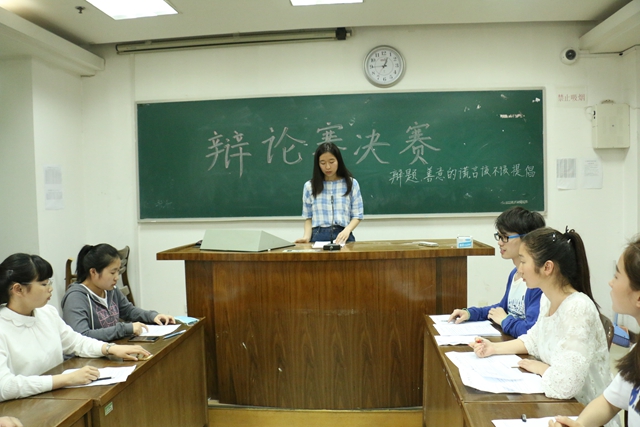 在5月3日至6日各班举办的三轮初赛中决出的两支代表队进行了最终角逐。本次辩论赛的题目是“善意的谎言该不该提倡”。双方辩手逻辑清晰,妙语连珠,现场气氛热烈,高潮迭起。最终反方获得最佳辩论团队。