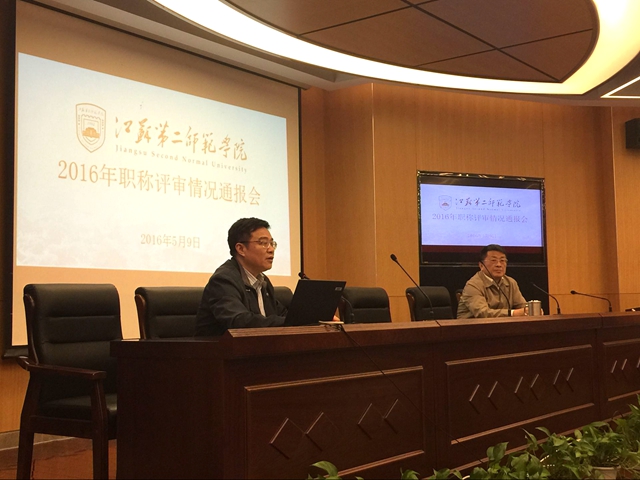 5月9日下午,我校在草场门校区召开2016年职称评审工作情况通报会。常务副院长周成平出席会议并讲话,会议由人事处处长周群主持,全体申报人员参加会议。